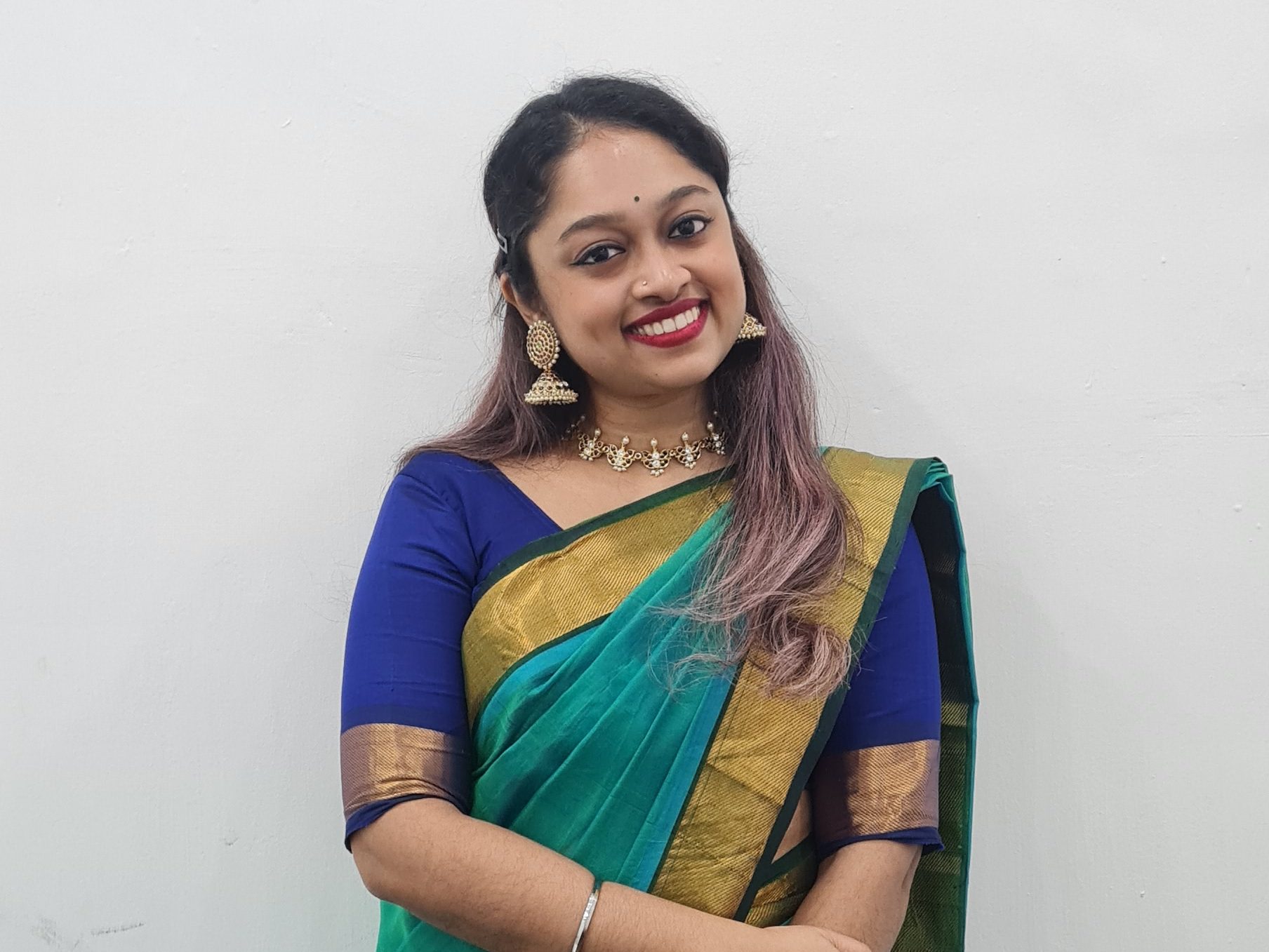 T Rishika Sherene, a student of Swarna Kala Mandir, has been learning Bharatnatyam from the age of 8 under the guidance of Acharya Swarna Varsha Gurumoorthy. She has performed in numerous events and temples for Navaratri festivals. Rishika also has taken part in online performance amidst pandemic and assisted in video productions. She also has taken part in Dance competitions in Singapore. Rishika has participated in various community and corporate events. She also had the privilege of performing in R K Swamy Hall, Chennai for Margazhi Natya Vizha in 2018. Recently she was a member of the thematic presentation “Krishnarpanam” representing Swarna Kala Mandir, staged at the Esplanade outdoor theatre during Kalaa Utsavam 2022. As a dynamic teacher, she creatively engages students in dance class and prepares them for exams, competitions and performances. As a student of media, she also assists in the institution’s video productions