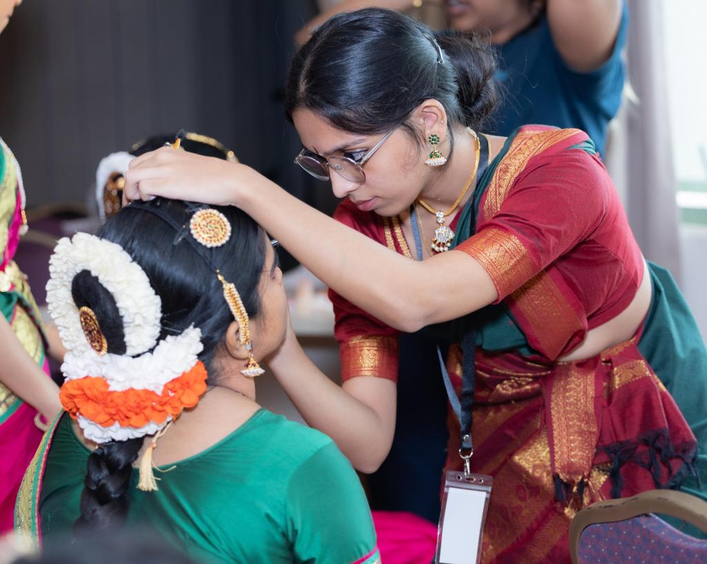 At Swarna Kala Mandir, we believe in enhancing the beauty and elegance of Indian classical dance through our newest venture, Alankaara. Alankaara is dedicated to offering professional Bharatanatyam and Kathak makeup and hairstyling services to elevate every performance, bringing out the best in every dancer on stage.